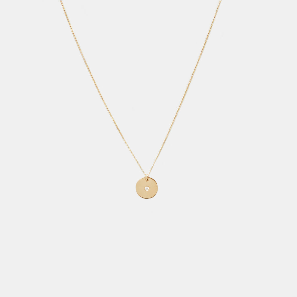 - Solid 9ct yellow necklace with disc pendant and diamond